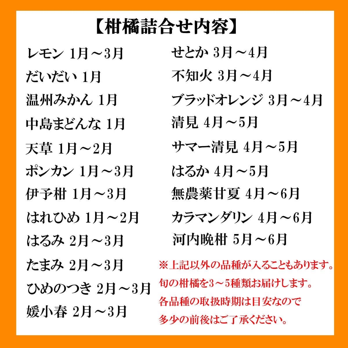 ※各品種の取扱時期は目安なので多少の前後はご了承ください。